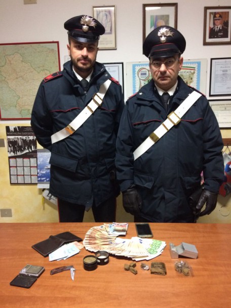 È stato proprio questo atteggiamento che ha insospettito gli uomini dell’Arma che subito hanno proceduto al controllo e alla perquisizione personale del giovane rinvenendo, nella tasca del giubbotto dallo stesso indossato, un involucro contenente circa 22 grammi di hashish nonché nel portafoglio 180,00 euro in banconote di piccolo taglio.