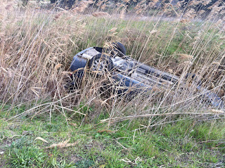 Due i veicoli coinvolti, uno dei quali è finito fuori strada, ribaltandosi in una cunetta.