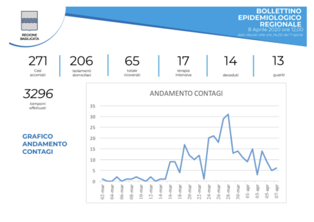 La task force comunica, inoltre, di aver appreso del decesso di un paziente di Potenza avvenuto mercoledì 8 aprile, e che lo stesso verrà computato nel totale dei decessi nella giornata di giovedì.