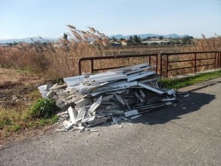 Le lastre di eternit sono state ritrovate in un cumulo vicino all’asfalto, non lontano dall’Oasi naturale del WWF.