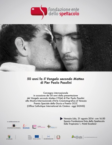 Nell’edizione numero 71 della Mostra internazionale del Cinema di Venezia, la scena sarà tutta per Pasolini ed i 50 anni dell’opera pasoliniana “Il Vangelo Secondo Matteo”. E’ previsto infatti, domenica 31 agosto, un convegno internazionale dal titolo “50 anni fa il Vangelo secondo Matteo di Pier Paolo Pasolini” con ospiti e relatori di primissimo piano come: Alberto Barbera – Direttore artistico 71. Mostra Internazionale d’Arte Cinematografica di Venezia, Ivan Maffeis – Presidente della Fondazione Ente dello Spettacolo, Enrique Irazoqui – Interprete nel ruolo di Gesù del Vangelo secondo Matteo di Pier Paolo Pasolini, Tomaso Subini – Università degli Studi di Milano, Michèle Debidour – Delegato dell’organizzazione internazionale SIGNIS (OCIC), Emiliano Morreale – Conservatore della Cineteca Nazionale – Centro Sperimentale di Cinematografia, Paride Leporace – Direttore della Lucana Film Commission, Mimmo Calopresti – Regista.
