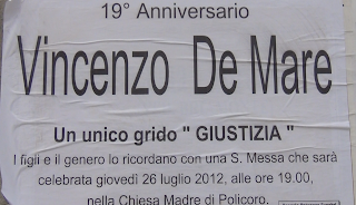 Ci chiediamo per quale motivo non possano avere oggi nei confronti di chiunque intralci il loro cammino ed i loro sporchi affari, la stessa determinazione che hanno avuto diciannove anni fa nel far fuori Vincenzo de Mare”.