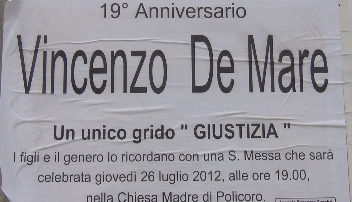 Ci chiediamo per quale motivo non possano avere oggi nei confronti di chiunque intralci il loro cammino ed i loro sporchi affari, la stessa determinazione che hanno avuto diciannove anni fa nel far fuori Vincenzo de Mare”.
