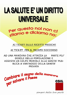 La Cgil di Matera, nella mattinata di martedì 19 luglio, sarà presente, dalle ore 8 e fino alle ore 10, davanti ai presidi ospedalieri di Matera, Policoro, Stigliano per sensibilizzare i cittadini sugli iniqui effetti della manovra del Governo.