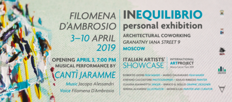 “Equilibrio”, la mostra personale di Filomena D’Ambrosio a Mosca, avrà inizio il 3 aprile, nello spazio espositivo Coworking Architettonico, al n° 9 di via Granatny Iana; per concludersi il 10 aprile 2019.