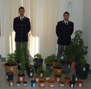 Nella casa sono stati trovati gr.100,76 di hashish, semi di marijuana e 30 piantine di marijuana in vasi, che sono stati sequestrati insieme a un bilancino di precisione.